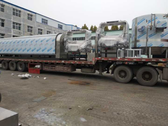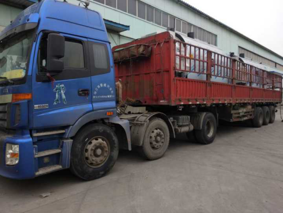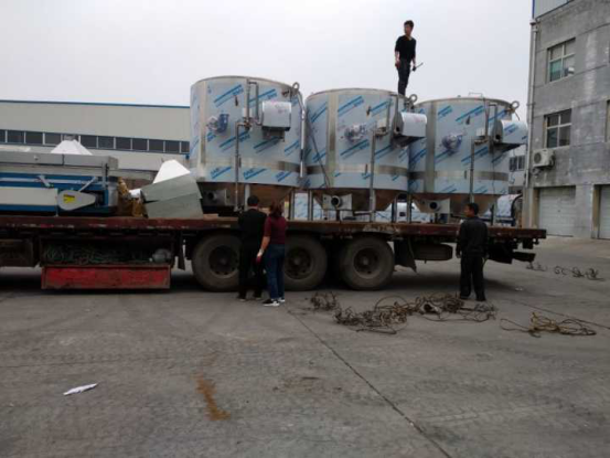 河南600炒機1臺、80冷卻床3臺、煮鍋4臺、中型復(fù)式篩選3臺、3.6米提升機2臺、2.7米提升機2臺 共兩車